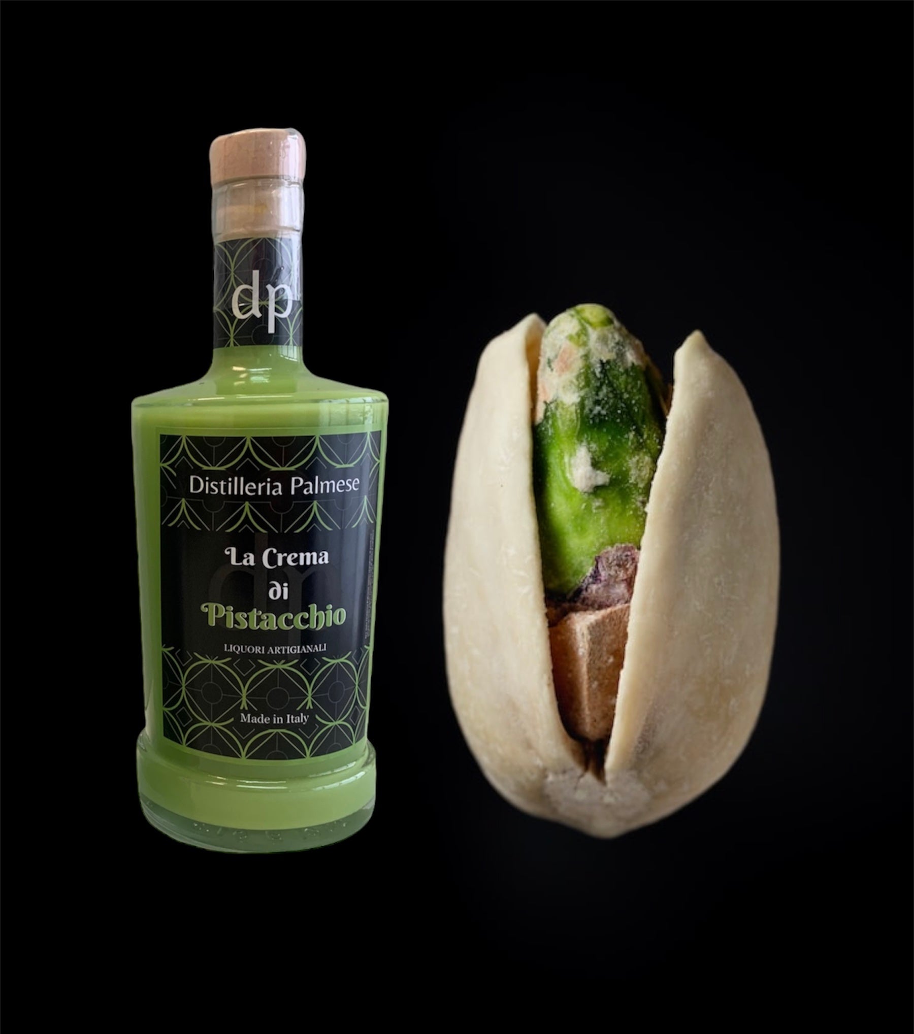 Crema al pistacchio della Distilleria Palmese, ottenuta con fresco latte. Al gusto è soffice e delicata, il sapore del pistacchio si combina perfettamente alla panna, grazie alla sua moderata gradazione alcolica regala un piacevolissimo dopo pasto. Ottimo anche in abbinamento o preparazione di dessert e gelato, o per la creazione di cocktail.